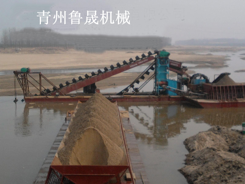 挖沙船又称挖沙机械,顾名思义即沙石采掘工具,多为流动作业之用。内陆河道挖沙船日采沙能力几十吨、到几千吨。船体采用拼装式箱型结构。配有挖掘装置、筛选装置、传送装置等。通过电机驱动挖斗上料,石块通过筛选传由输送带传出,沙子由输送带传到地点。