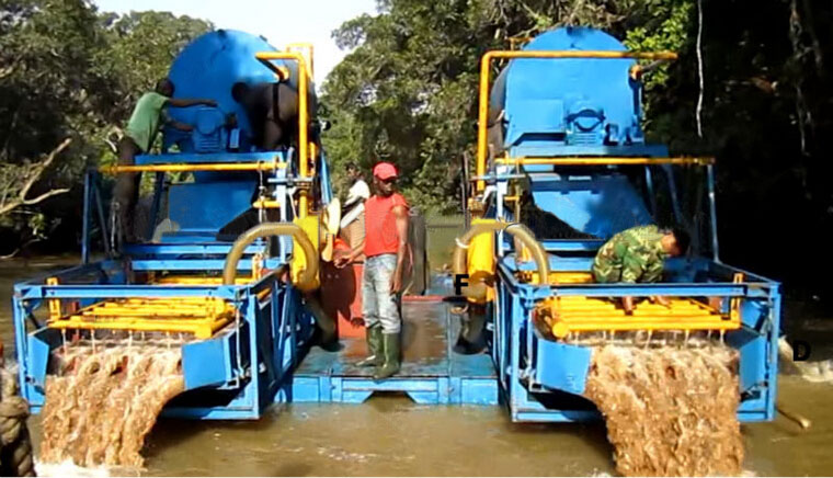 本淘金船具有投资成本合理、回收率高、能耗少、操作简单、移动方便简单、等特点,是河道沙金开采的设备。